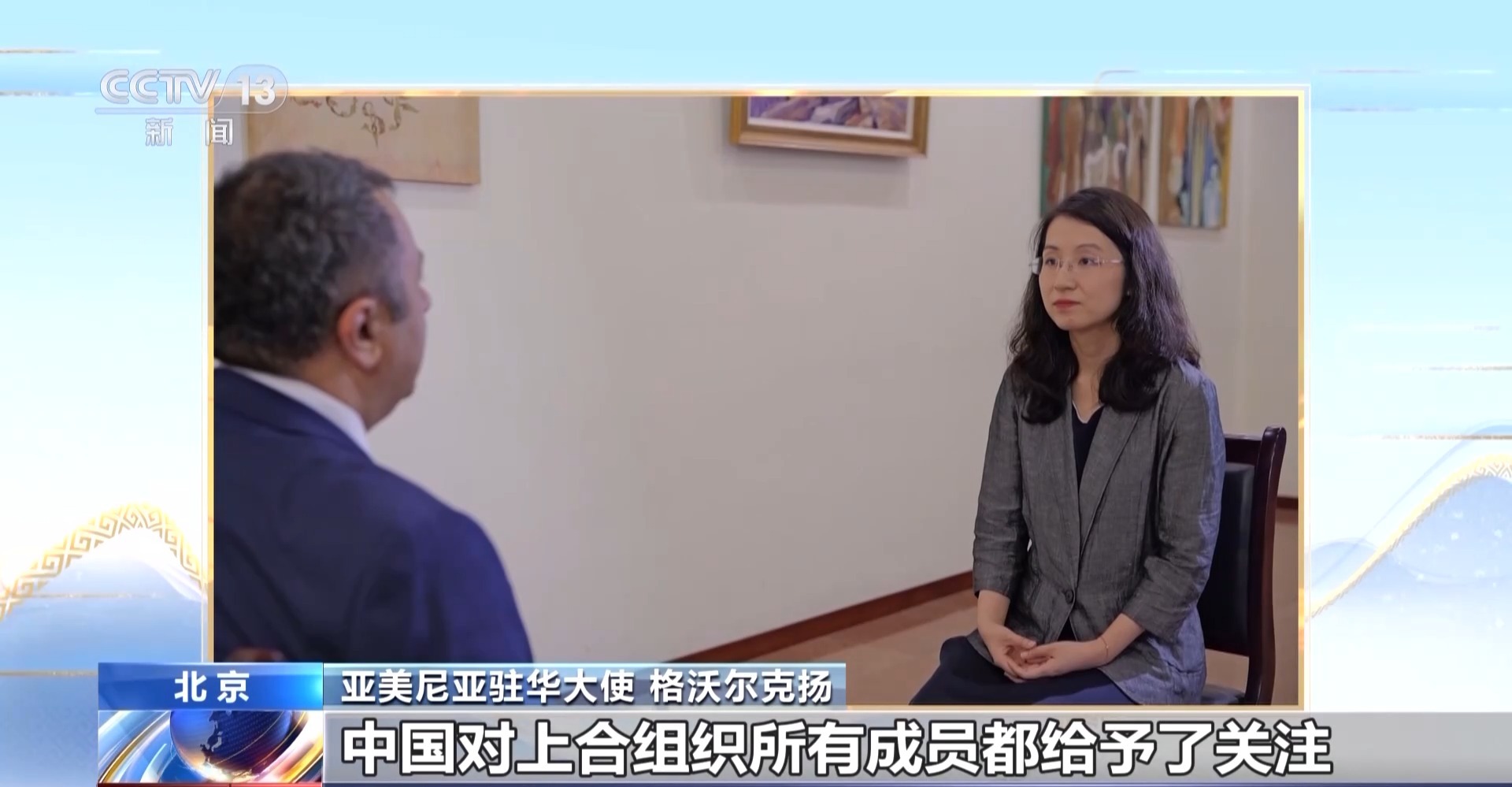亚美尼亚驻华大使 格沃尔克扬:亚美尼亚非常高兴能够参与各种倡议和活动,在中国担任轮值主席国期间,我们特别欣慰地看到,中国对上合组织所有成员都给予了关注。同时,我们注意到,中方非常具有吸引力的政策就是其坚持扩大规模、强化合作。我们希望中国担任主席国,能够实现其目标和愿景,我们也愿意参与其中。
